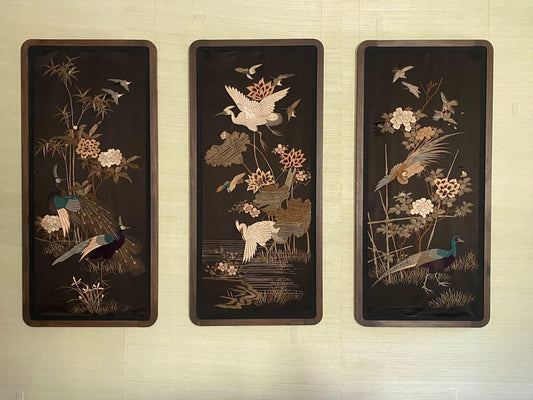 Early 20th Century Embroidered Chinese/Oriental Silk Screen (Framed, 1/3)